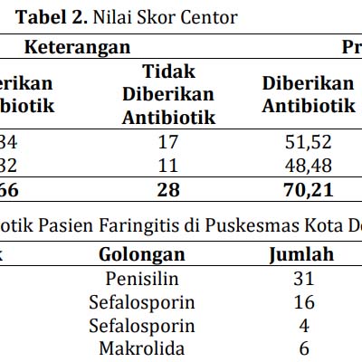Pharyngitis is an inflammatory disease of the throat caused by viruses (70-90%) and bacteria (10-30%), and one of the diseases that is ranked third in the pattern of the 10 most common diseases in Puskesmas 2017. Appropriate therapy in pharyngitis is still lacking, where antibiotic therapy is still very high in children. This study was conducted to determine the rationality of antibiotic therapy in acute pharyngitis based on the centor score and to see the description of the suitability of the dose, indication, time of administration, frequency of administration and the presence of drug side effects. The design of this study used descriptive analysis with a cross-sectional retrospective method. Data collection was carried out by collecting samples derived from secondary data by observing pharyngitis patient medical record data at the Denpasar City Health Center in February - April 2022. The inclusion criteria of this study were complete and readable medical records in children aged 3-14 years. Results showed that giving antibiotics based on suitability for centor criteria showed that 70.22% of cases in this study were still not giving antibiotics correctly based on the score obtained. Based on the appropriateness of the use of antibiotics seen from the criteria for dosage, indication, time of administration, frequency of administration and warning of drug side effects, the results obtained were as many as (39.40%) doses that were inappropriate because the dose received was lower than the dose stated in the literature, the duration of antibiotic administration 86.36% of patients who did not use the right antibiotic, and all patients had the right frequency of using antibiotics and none experienced drug side effects. The rationality of giving antibiotics for pharyngitis is still not in accordance with the Puskesmas guidelines using centor criteria. Suggestions need to be evaluated against the use of antibiotics in pharyngitis in an effort to reduce the use of antibiotics in accordance with centor criteria.